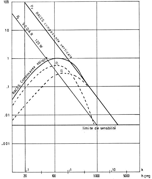 la portée pratique d'un sodar monostatique comportant une antenne acoustique de 120W électrique est de 1000m